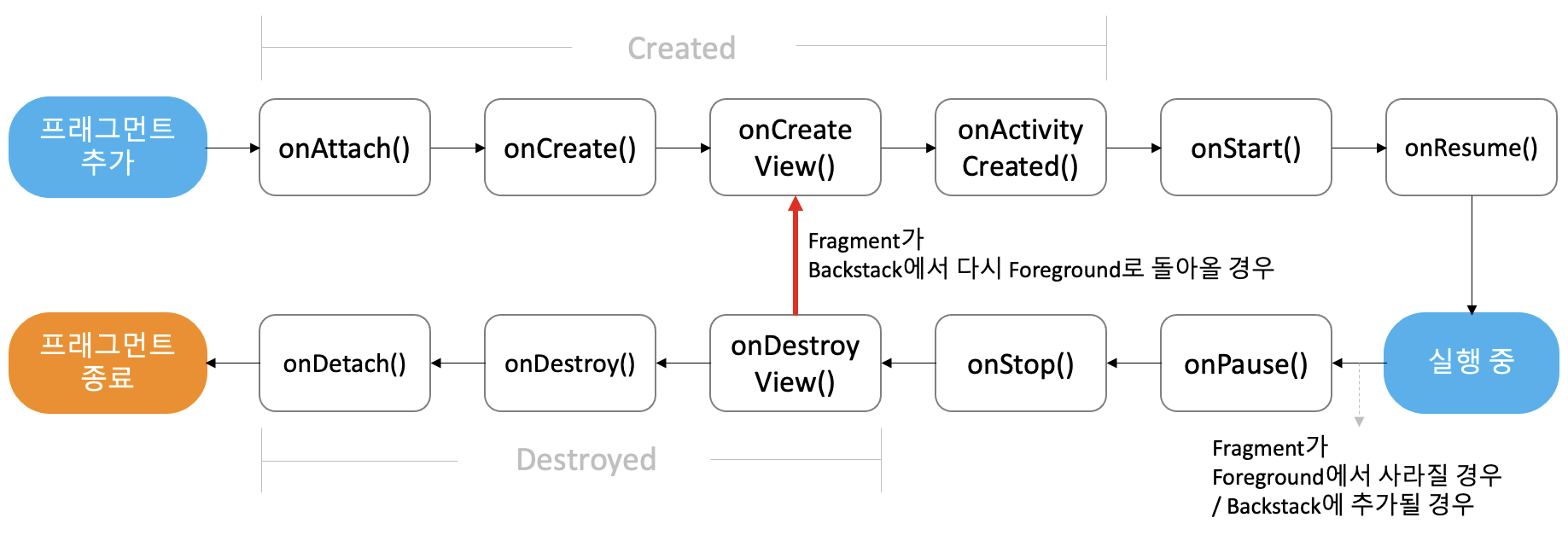 Fragment를 다시 보여줘야할 때 새로운 View가 생성된다.