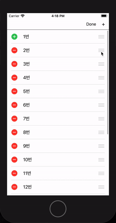 처음에는 tableview reorder라고 검색을 했는데 간단하게 구현된게 없어서