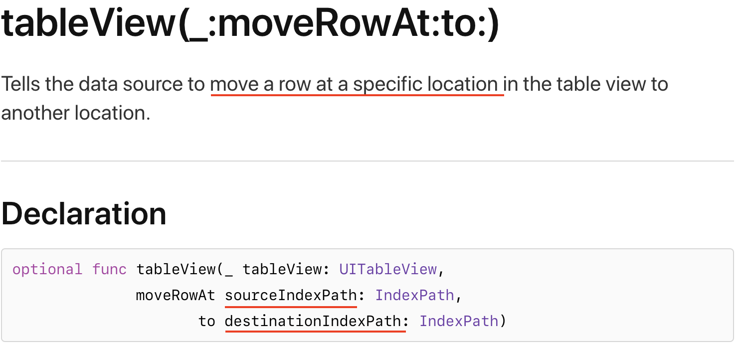 Declaration을 보면 sourceIndexPath와 destinationIndexPath가 있다.
