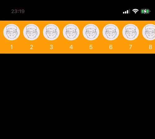 아래와 같이 height 가 80인 Horizontal 방향의 UIScrollView를 만들어 보자.