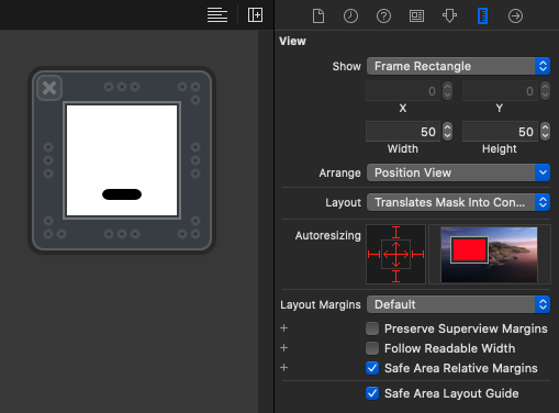 View의 Size를 FreeForm으로 설정하고 Width와 Height의 비율을 1:1로 설정한다.